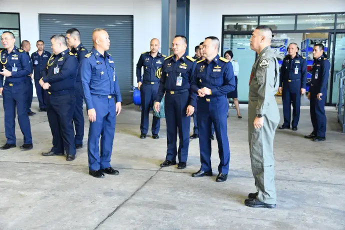 มอบหมายให้ นาวาอากาศเอก คมกฤช เพชรสุข เสนาธิการโรงเรียนการบิน ให้การต้อนรับ โดยมี ผู้บังคับการกองฝึกการบิน โรงเรียนการบิน หัวหน้ากองซ่อมบำรุงอากาศยานโรงเรียนการบิน และข้าราชการกองซ่อมบำรุงอากาศยาน โรงเรียนการบิน ร่วมให้การต้อนรับและรับฟังบรรยายสรุป ณ ห้องประชุมกองซ่อมบำรุงอากาศยาน โรงเรียนการบิน