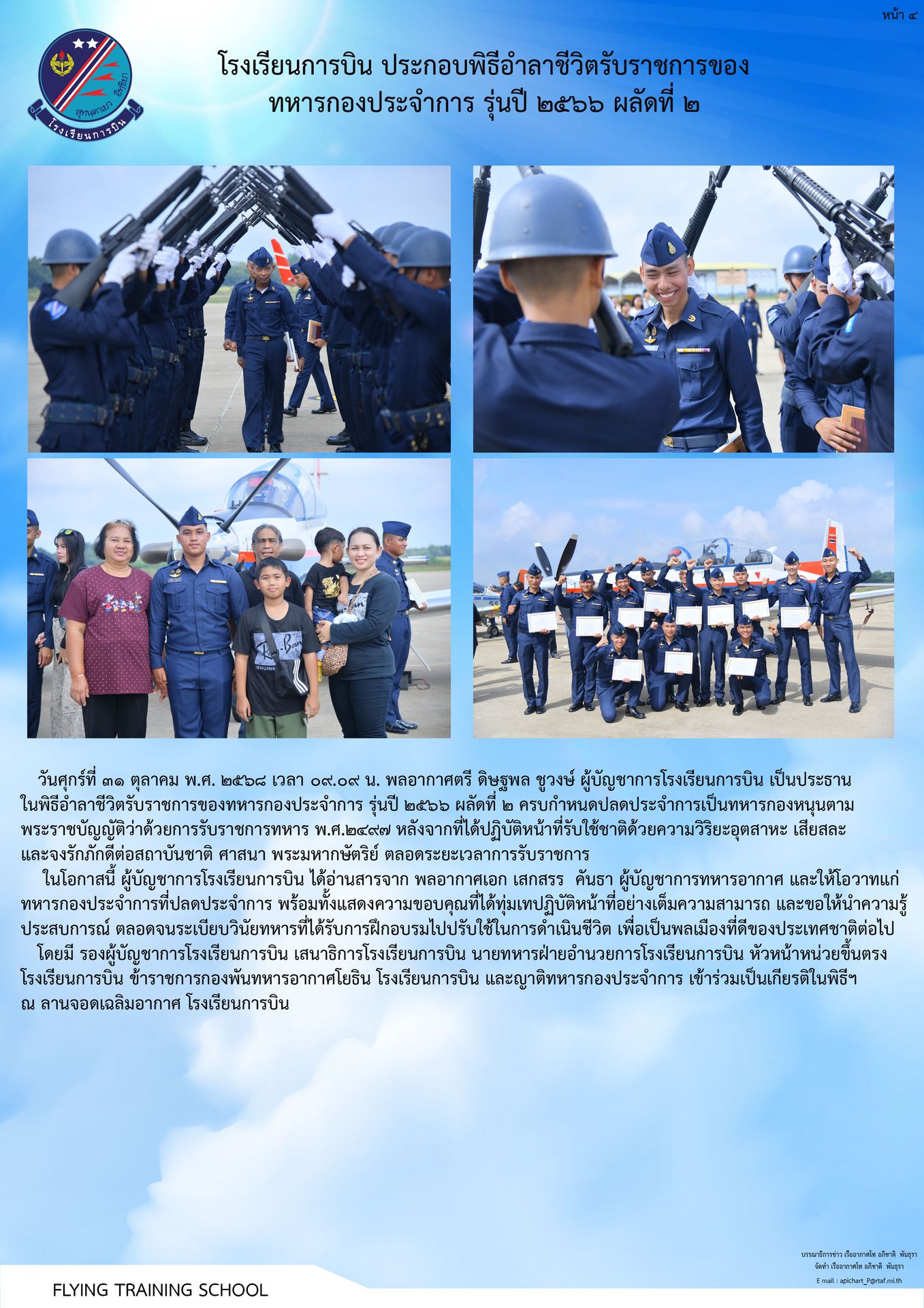 โรงเรียนการบิน ประกอบพิธีอำลาชีวิตรับราชการของทหารกองประจำการ รุ่นปี ๒๕๖๖ ผลัดที่ ๒