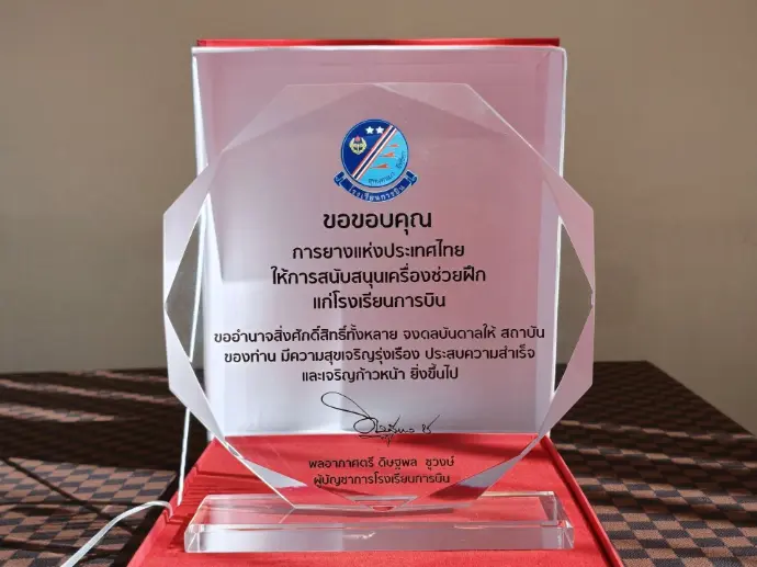 โรงเรียนการบิน รับมอบอุปกรณ์ฝึก ที่ทำจากยางพารา