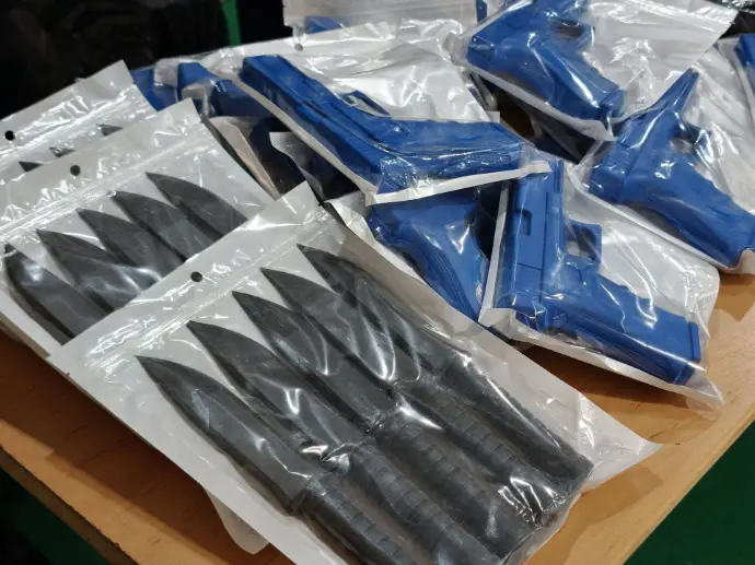 โดยฝ่ายอุตสาหกรรมยาง กยท. ประกอบด้วย มีดยาง 30 เล่ม ปืนพกยาง (Glock) 30 กระบอก ปืนยาวยาง (M4) 30 กระบอก และกระบองยาง 30 อัน ซึ่งออกแบบเพื่อรองรับการฝึกปฏิบัติอย่างปลอดภัย