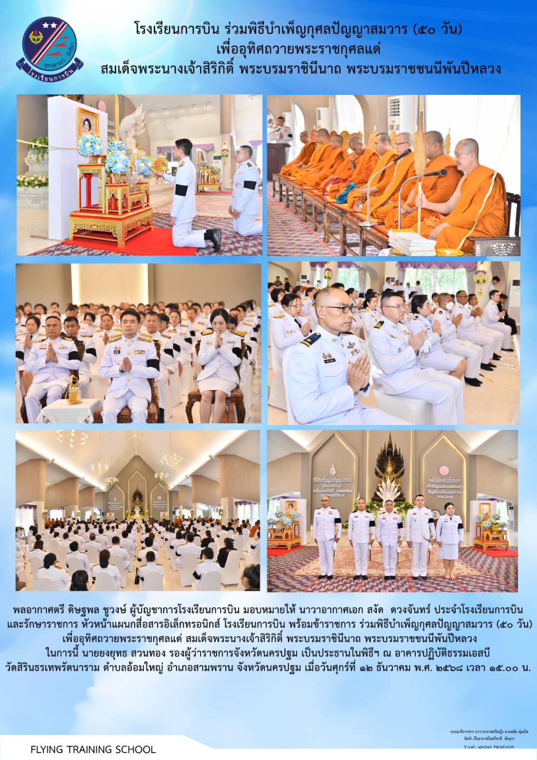 โรงเรียนการบิน ร่วมพิธีบำเพ็ญกุศลปัญญาสมวาร (๕๐ วัน) เพื่ออุทิศถวายพระราชกุศลแด่ สมเด็จพระนางเจ้าสิริกิติ์ พระบรมราชินีนาถ พระบรมราชชนนีพันปีหลวง