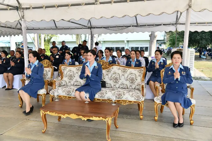 เรืออากาศโทหญิง นาตยา ชูวงษ์ ประธานชมรมคู่สมรสทหารอากาศ โรงเรียนการบิน หัวหน้าส่วนราชการจังหวัดนครปฐม พร้อมหัวหน้าหน่วยขึ้นตรงโรงเรียนการบิน ข้าราชการ ลูกจ้าง พนักงานราชการ