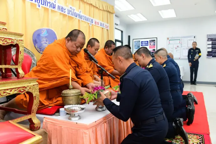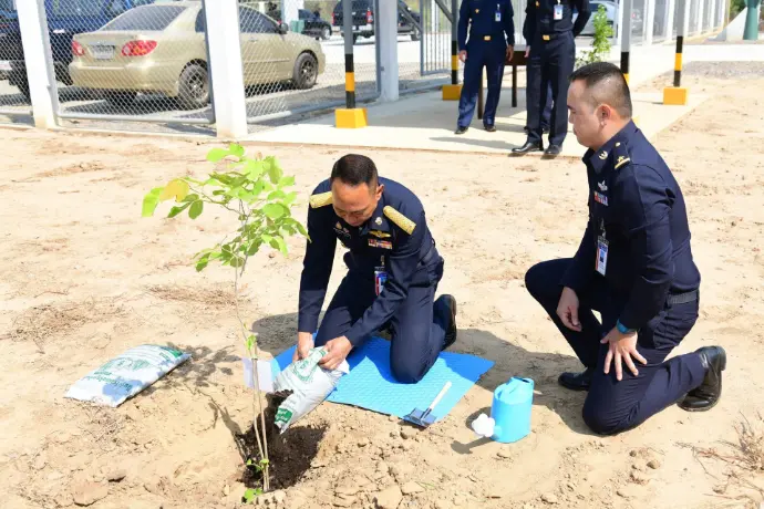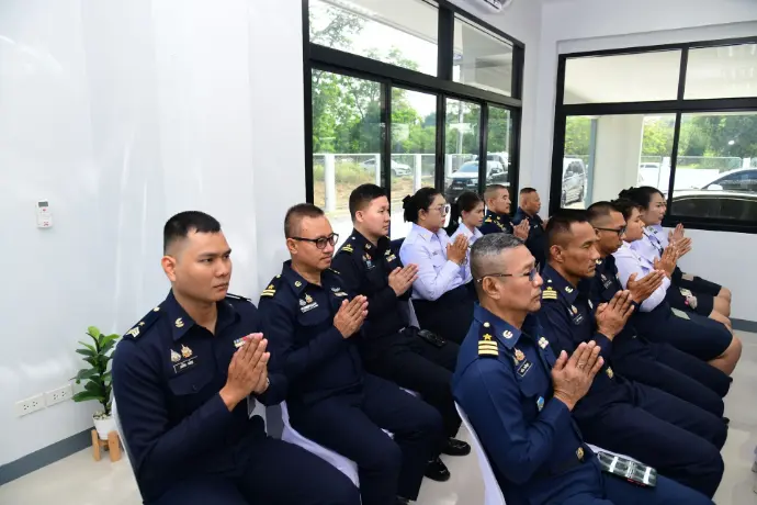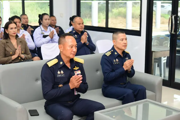 ลูกจ้าง พนักงานราชการ ในสังกัด เข้าร่วมพิธีฯ ณ อาคารเก็บรักษาอุปกรณ์ และบริภัณฑ์สรรพาวุธ โรงเรียนการบิน