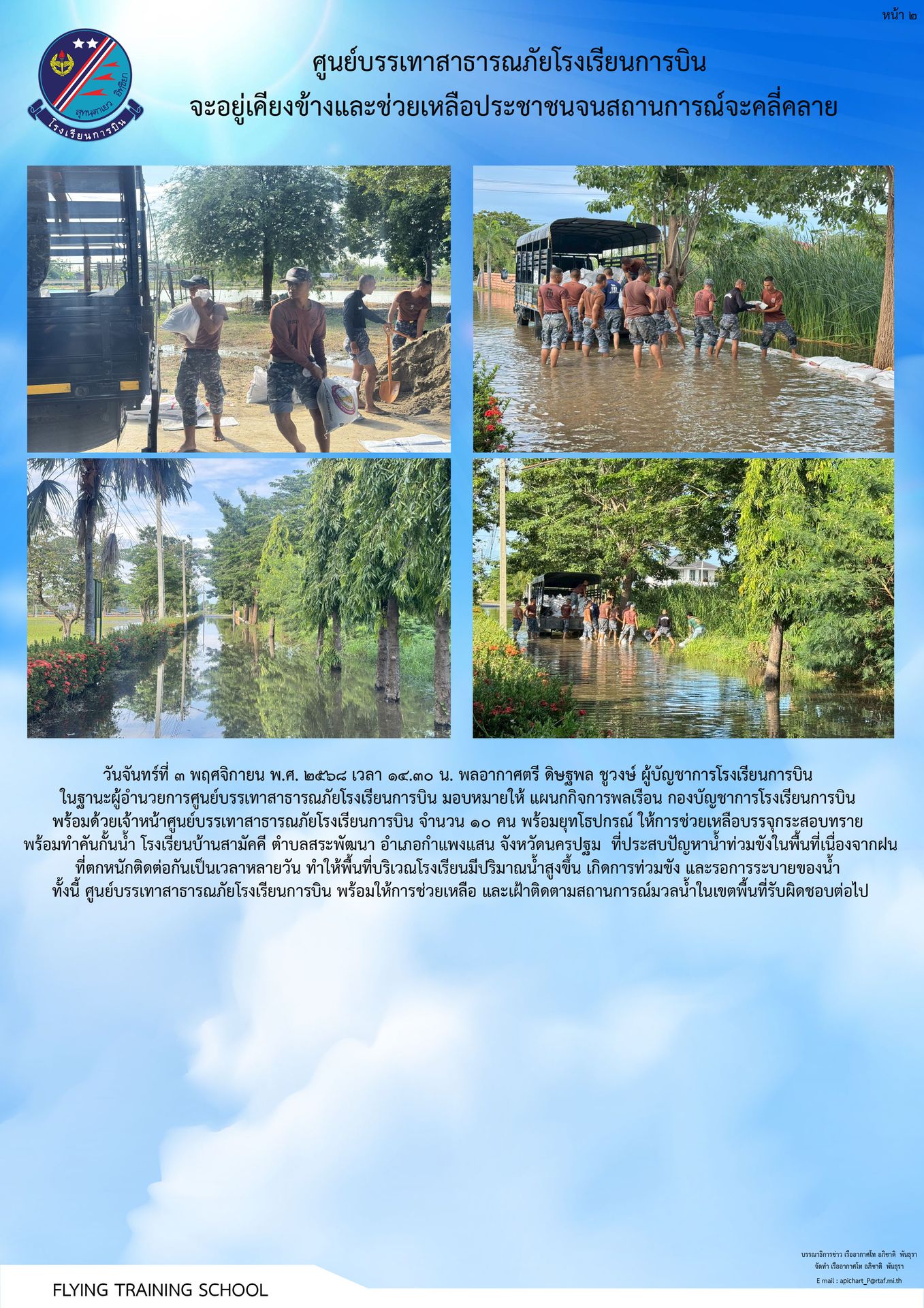 ศูนย์บรรเทาสาธารณภัยโรงเรียนการบิน เร่งเข้าช่วยเหลือโรงเรียนบ้านสามาัคคี ตำบลสระพัฒนา อำเภอกำแพงแสน ที่ประสบปัญหาน้ำท่วมขังในพื้นที่